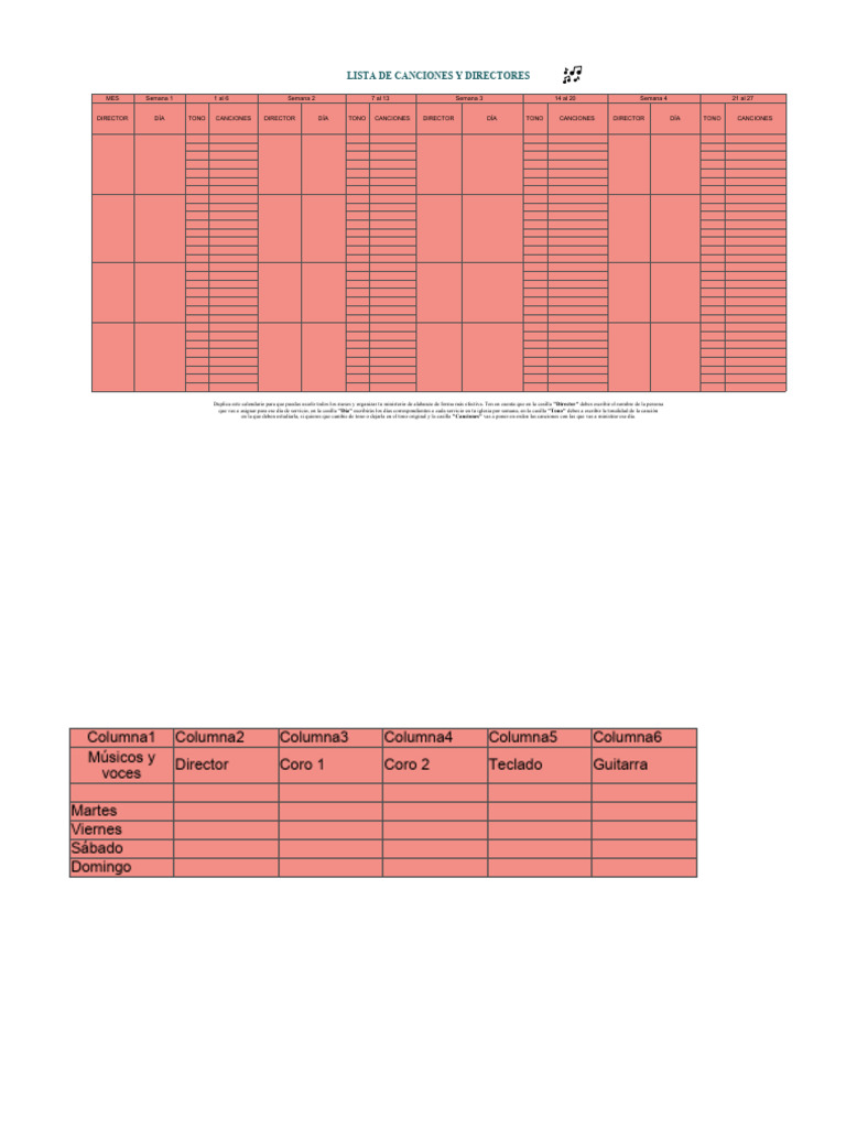 Duplica este calendario para que puedas usarlo todos los meses y organizar tu ministerio de alabanza de forma más efectiva. Ten en cuenta que en la casilla "Director" debes escribir el nombre de la persona