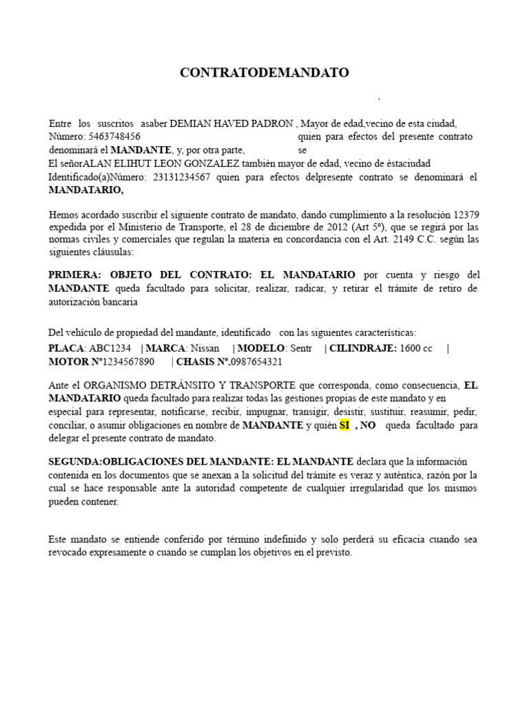 Hemos acordado suscribir el siguiente contrato de mandato, dando cumplimiento a la resolución 12379