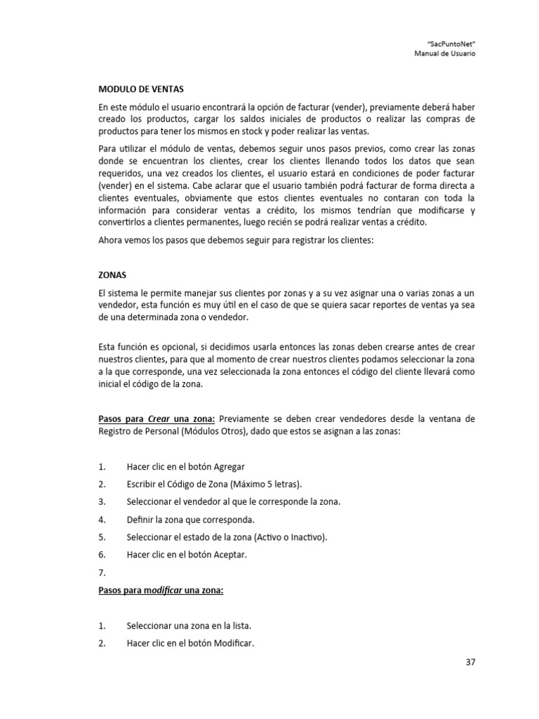Pasos para Crear una zona: Previamente se deben crear vendedores desde la ventana de