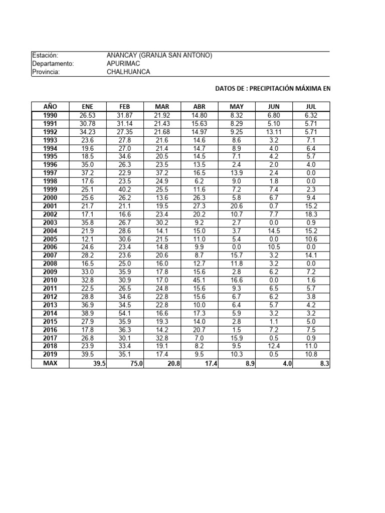 Estación: ANANCAY (GRANJA SAN ANTONO)
