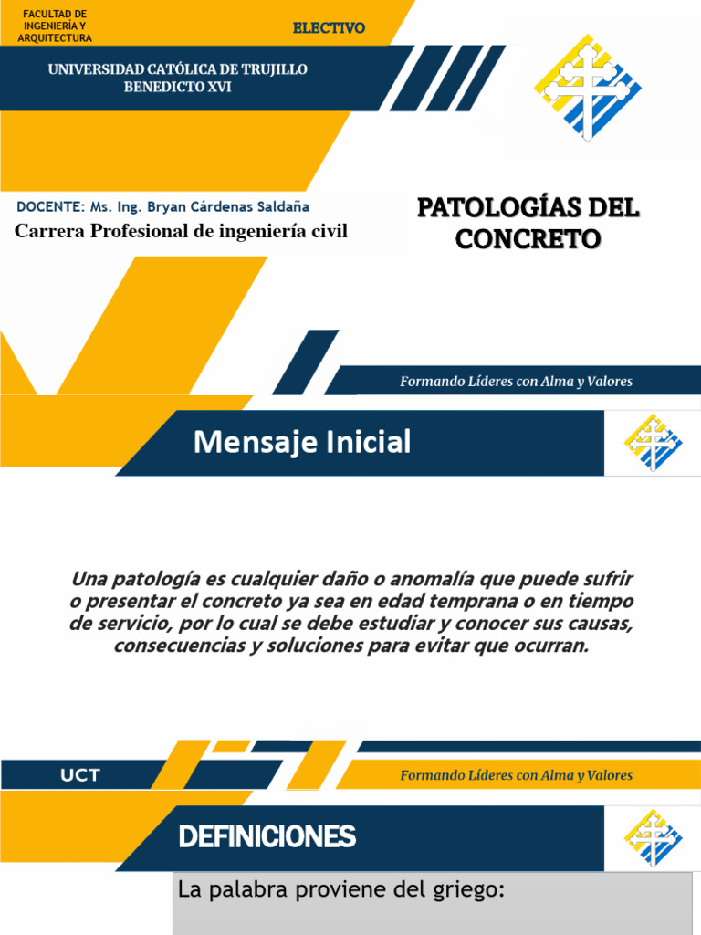 DOCENTE: Ms. Ing. Bryan Cárdenas Saldaña PATOLOGÍAS DEL