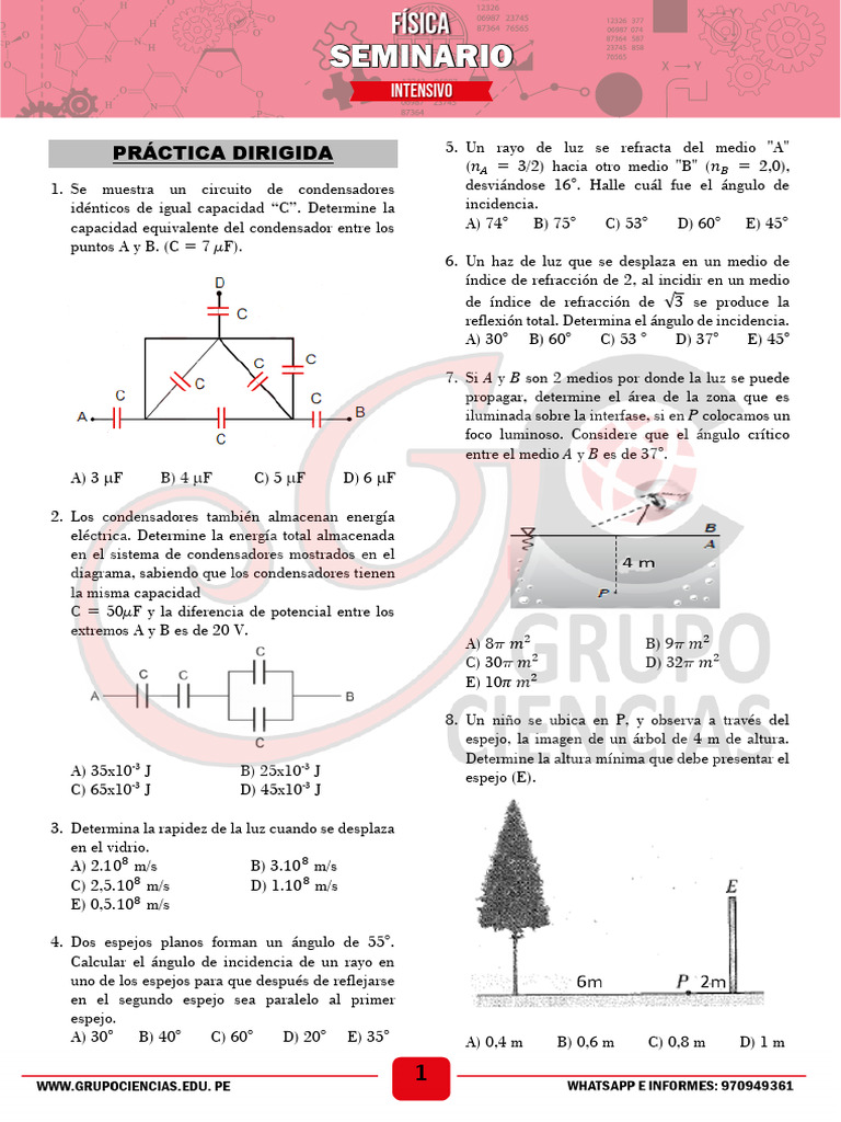 PRÁCTICA DIRIGIDA 5. Un rayo de luz se refracta del medio "A"
