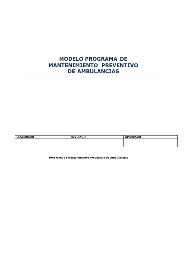 PROGRAMA DE MANTENIMIENTO DE AMBULANCIAS: Documento interno de la