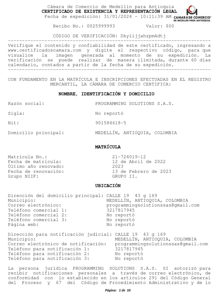 Correo electrónico de notificación: programmingsolutionssas@[Link]