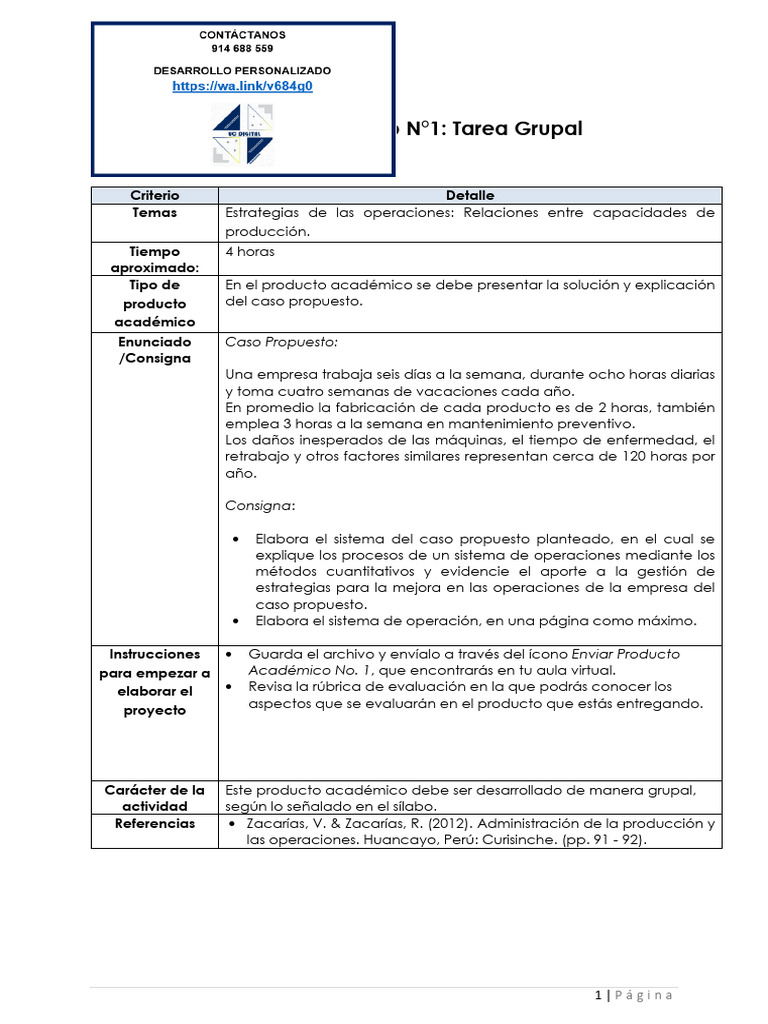 Carácter de la Este producto académico debe ser desarrollado de manera grupal,