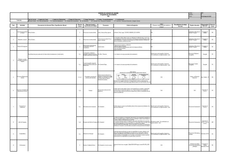 Tipo de Control: 0: Inspección Visual 1: Inspección Dimensional 2: Ensayo No Destructivo 3: Ensayo Destructivo 4: Pruebas / Precomisionamiento 5: Certificaciones