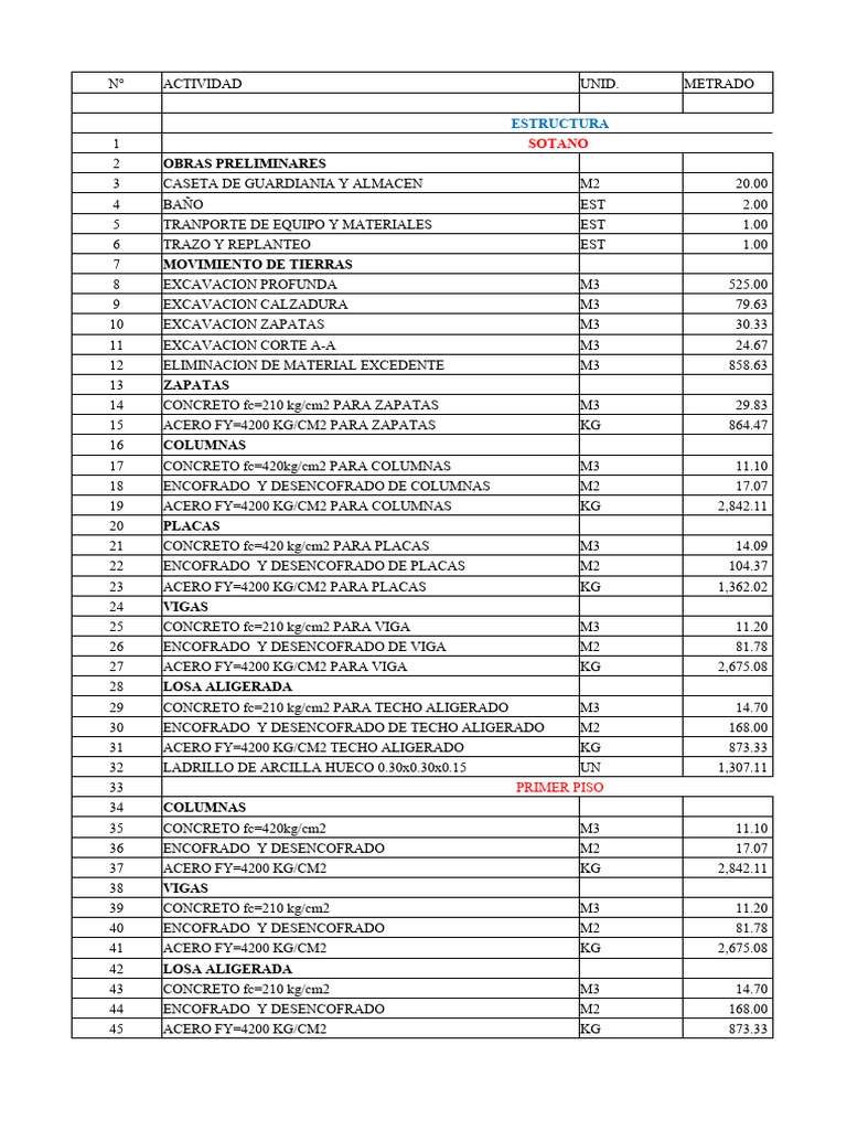 44 ENCOFRADO Y DESENCOFRADO M2 168.00