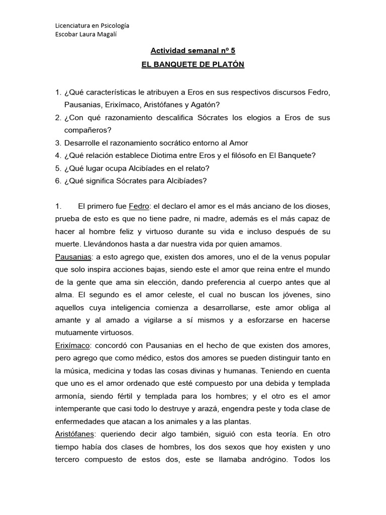 protagonista en el banquete, con el fin de comprender su comportamiento con