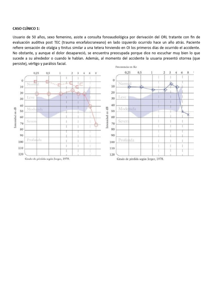 evaluación auditiva post TEC (trauma encefalocraneano) en lado izquierdo ocurrido hace un año atrás. Paciente