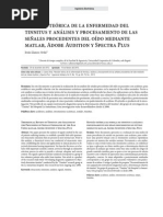 de tonos agudizados y tinnitus bilateral. No presenta ningún signo de síndromes vestibulares.