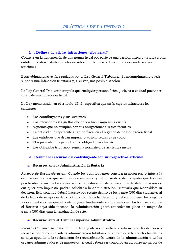 entidad. Existen distintos niveles de infracción tributaria. Una infracción suele acarrear