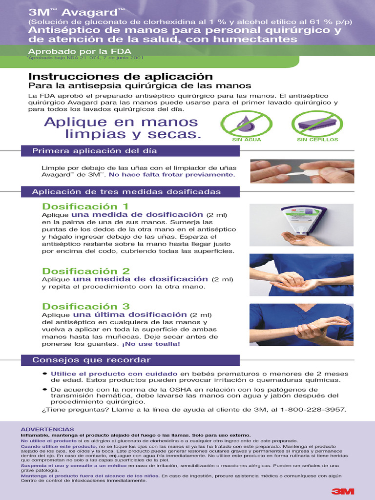 quirúrgico Avagard para las manos puede usarse para el primer lavado quirúrgico y