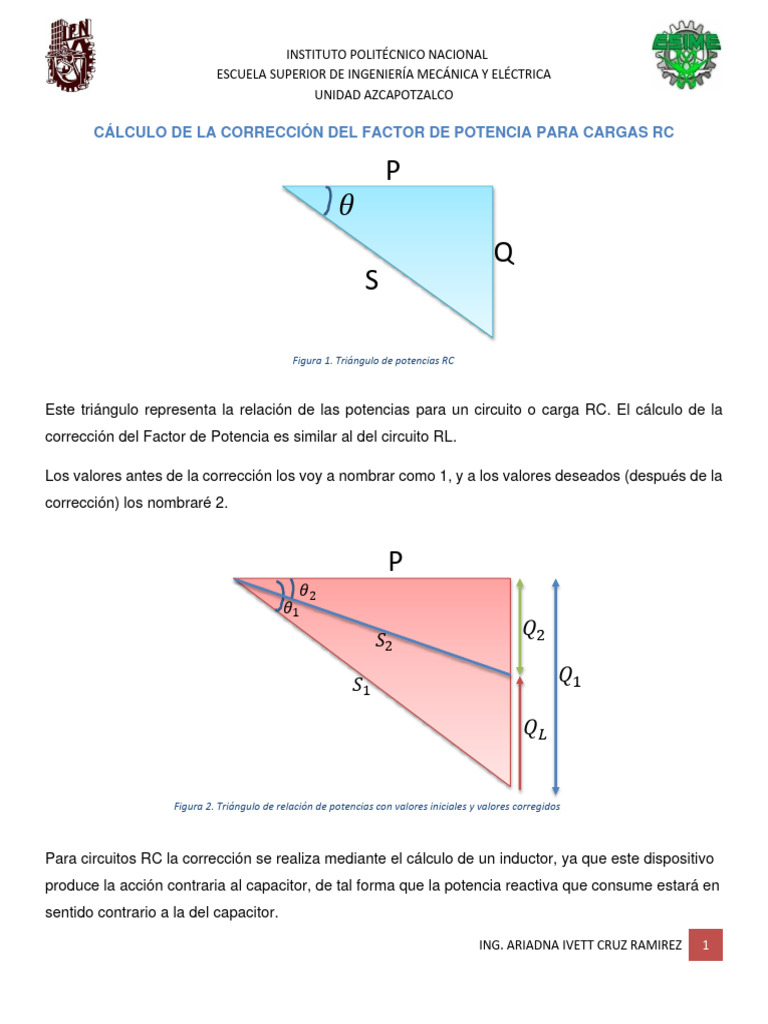 CÁLCULO DE LA CORRECCIÓN DEL FACTOR DE POTENCIA PARA CARGAS RC