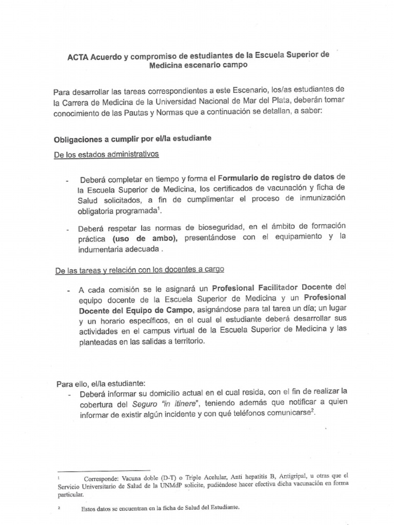 ACTA Acuerdo y compromiso de estudiantes de la Escuela Superior de
