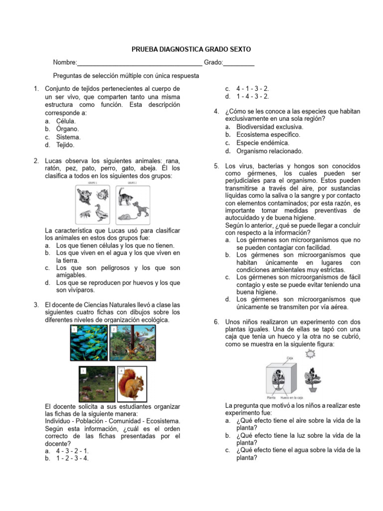 PRUEBA DIAGNOSTICA GRADO SEXTO