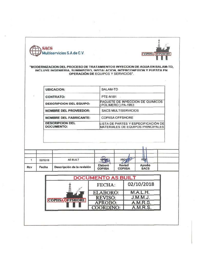 FABRICANTE: COPIISA OFFSHORE SA DE GY.