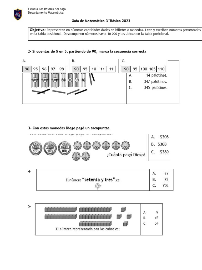 Objetivo: Representan en números cantidades dadas en billetes o monedas. Leen y escriben números presentados