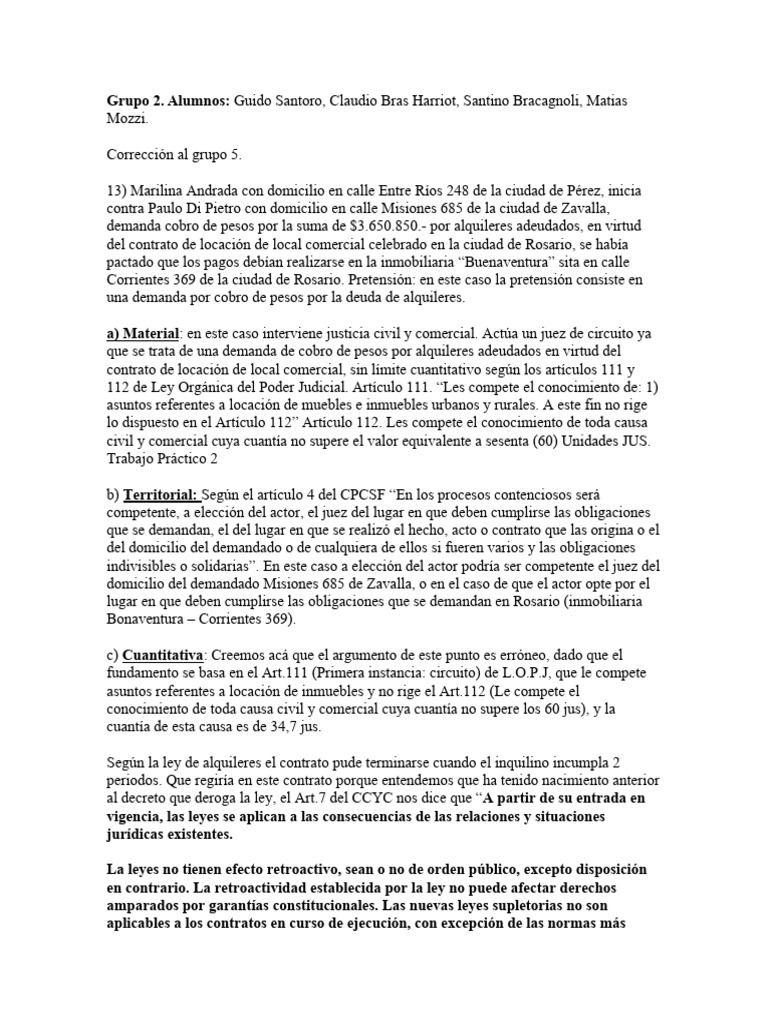 15) El Sr. Andrés, con domicilio en la ciudad de Rosario, inicia demanda de