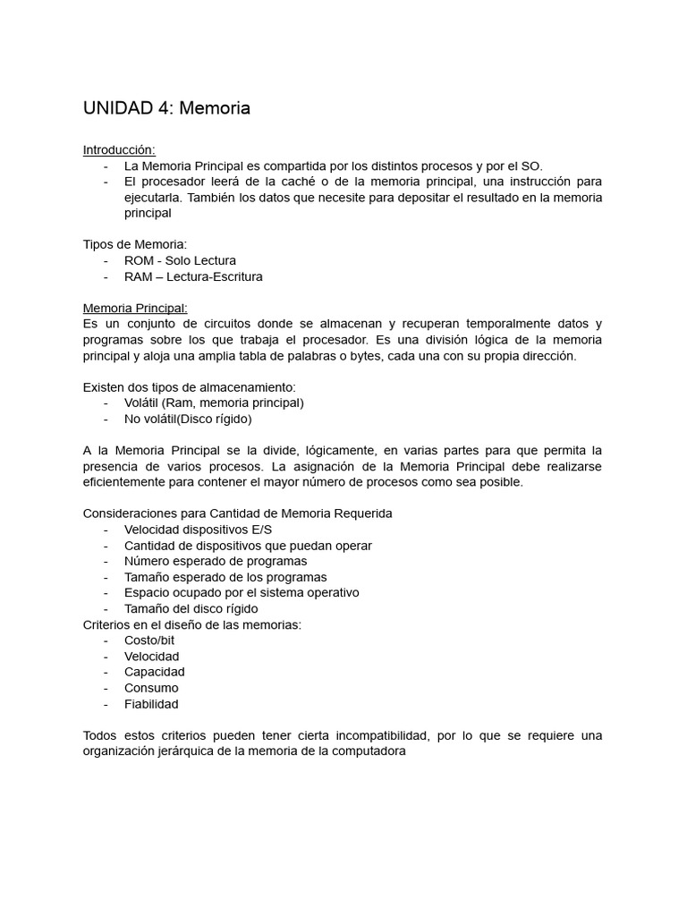 - La Memoria Principal es compartida por los distintos procesos y por el SO.