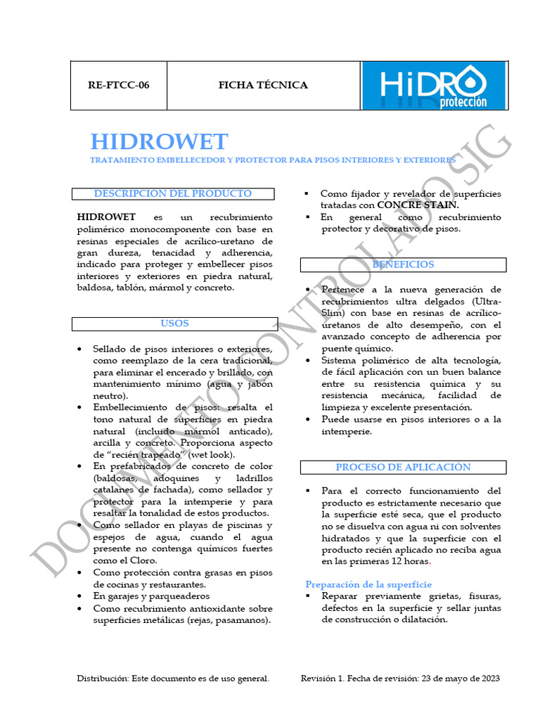 HIDROWET es un recubrimiento En general como recubrimiento