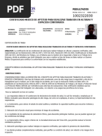 La presente opinión no considera en el personal revisado los conocimientos, habilidades y experiencia obligatorias para la ejecución de las actividades descritas en el AST correspondiente; no sustituye al examen médico periódico de vigilancia; no