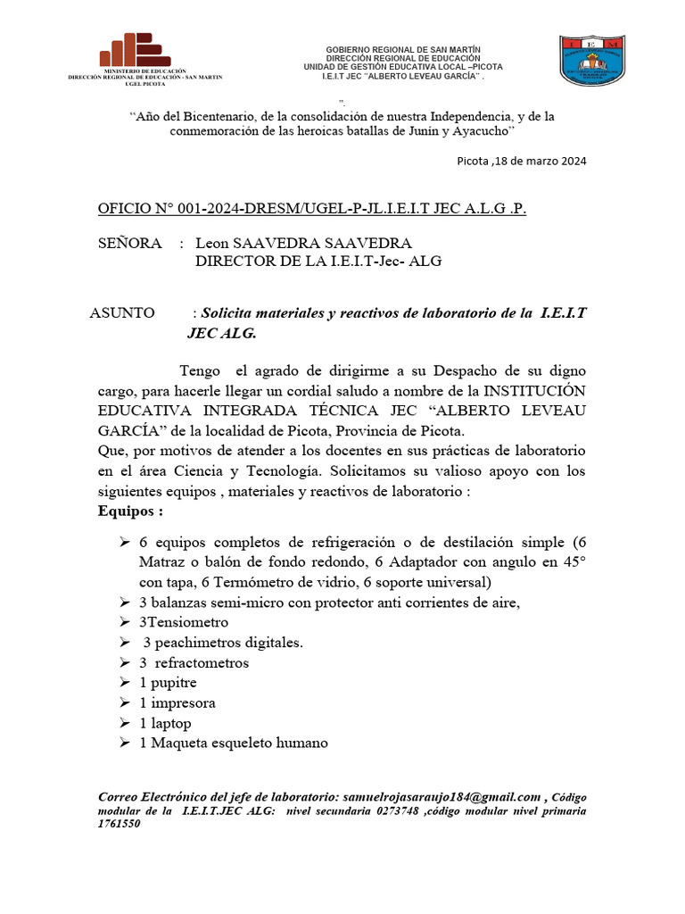 OFICIO N° 001-2024-DRESM/UGEL-P-JL.I.E.I.T JEC A.L.G .P.