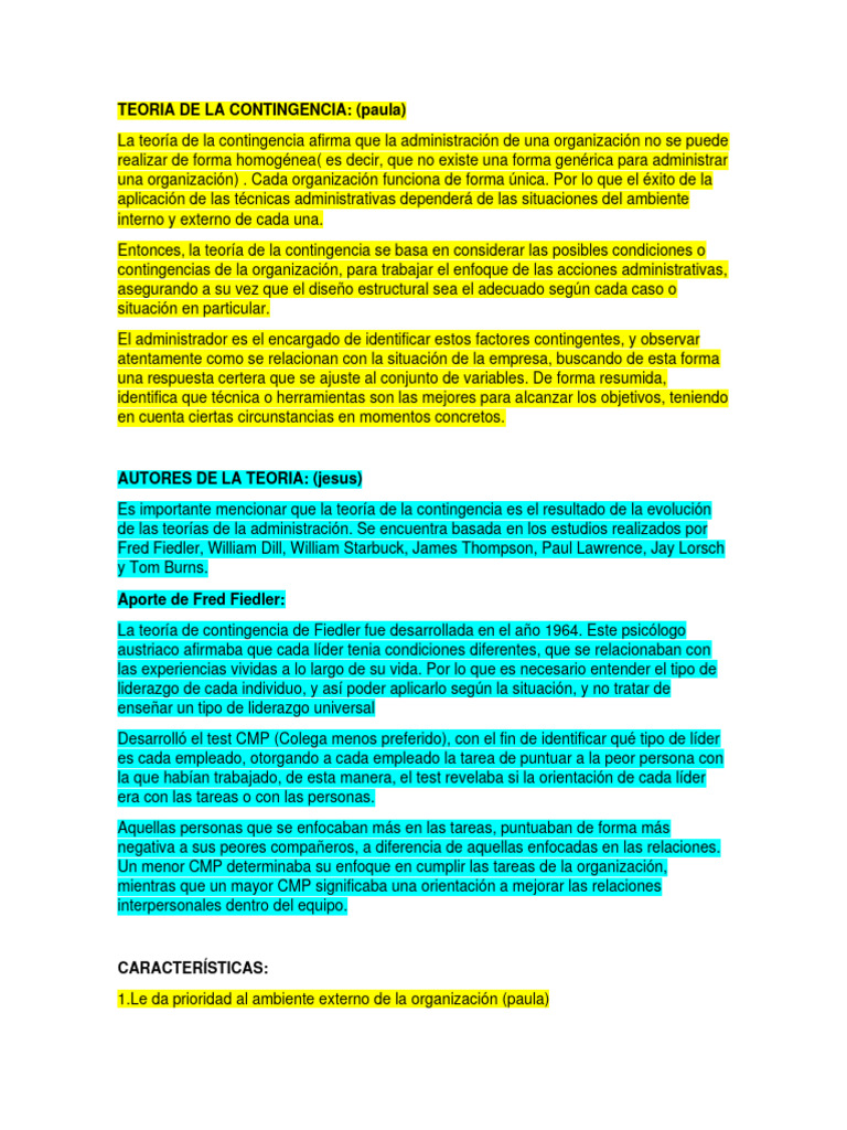 PRINCIPIOS DE LA TEORÍA DE LA CONTINGENCIA (leidy)