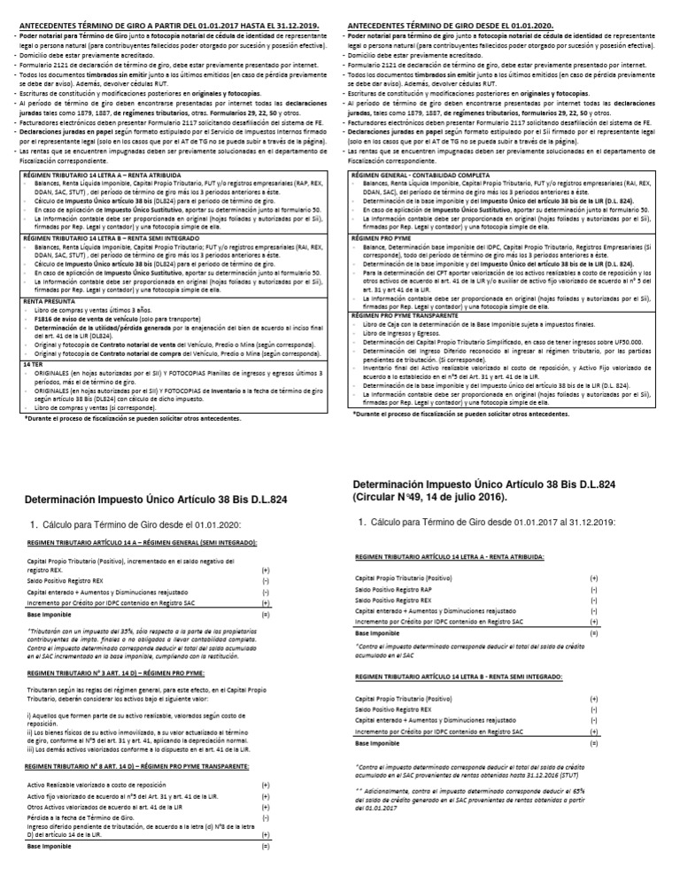 ANTECEDENTES TÉRMINO DE GIRO A PARTIR DEL 01.01.2017 HASTA EL 31.12.2019. ANTECEDENTES TÉRMINO DE GIRO DESDE EL 01.01.2020.
