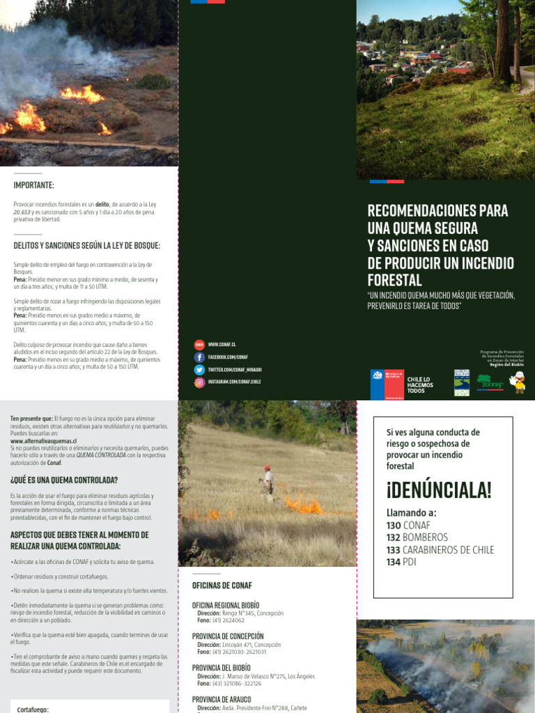 •Acércate a las oficinas de CONAF y solicita tu aviso de quema. 134 PDI