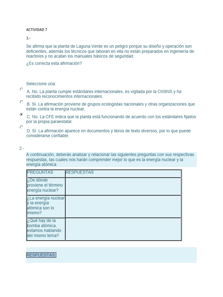 respuestas, las cuales nos harán comprender mejor lo que es la energía nuclear y la