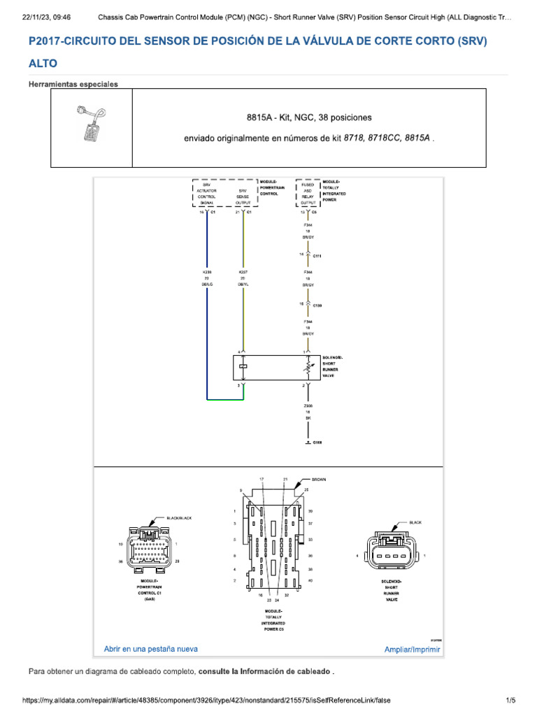 ntps:simy.adata.comvepaleiiaricte/48385!component3926ltypel423inonstandard/218575ieSetReterenceLinkialse 3822/1123, 09:48 Chassis Cat Powertrain Control Module (PCM) (NGC)- Short Runner Valve (SRV} Pasion Sensor Circuit High (ALL Diagnostc Tr.