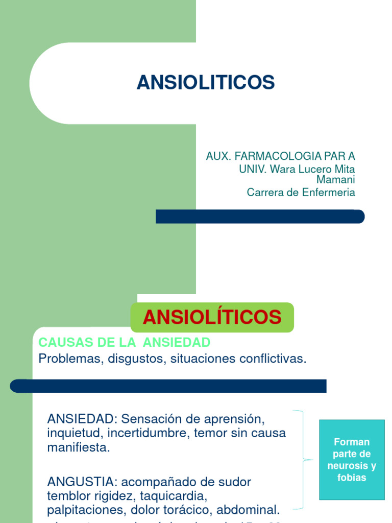 ⚫ En pacientes con ansiedad: alivian la tensión subjetiva y los