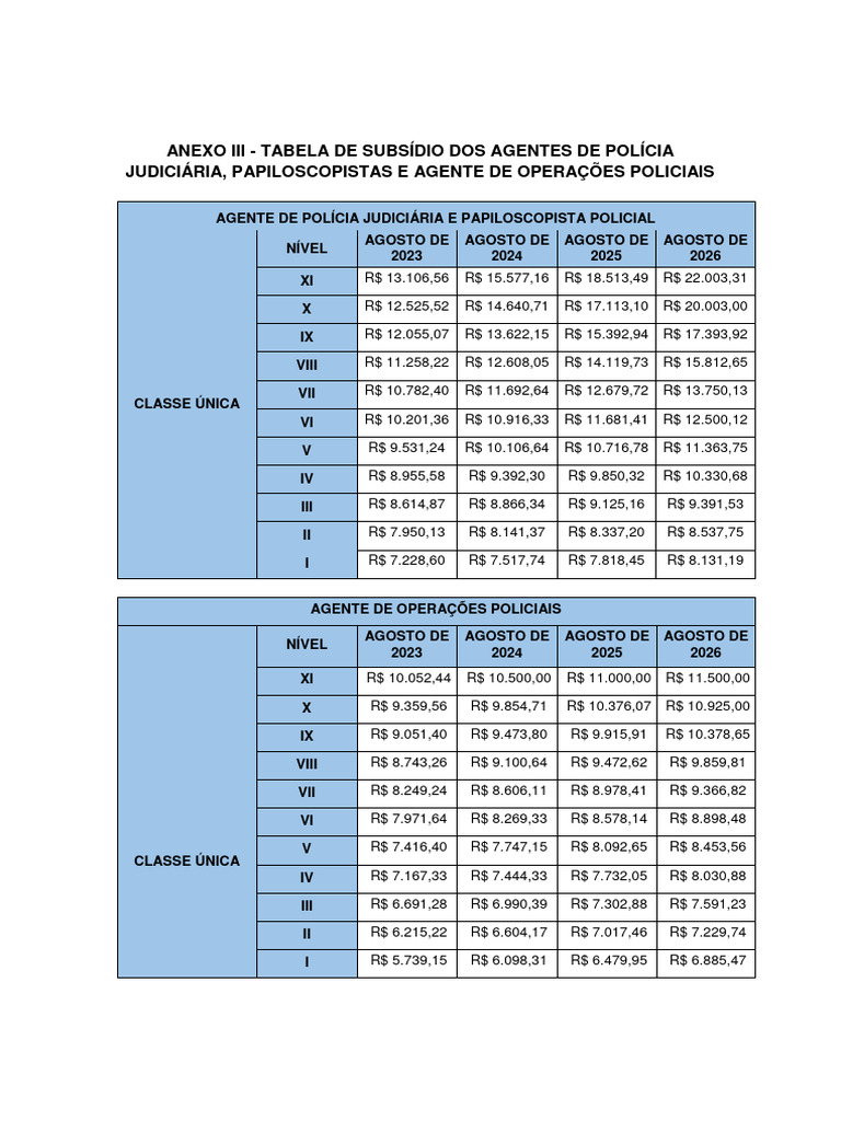 ANEXO III - TABELA DE SUBSÍDIO DOS AGENTES DE POLÍCIA