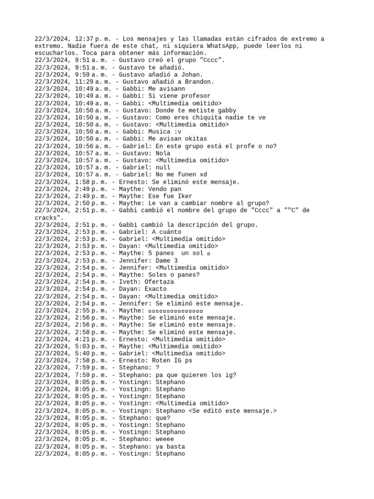 22/3/2024, 9:51 a. m. - Gustavo creó el grupo "Cccc".
