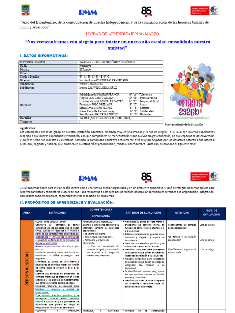 UNIDAD DE APRENDIZAJE N°0 - MARZO