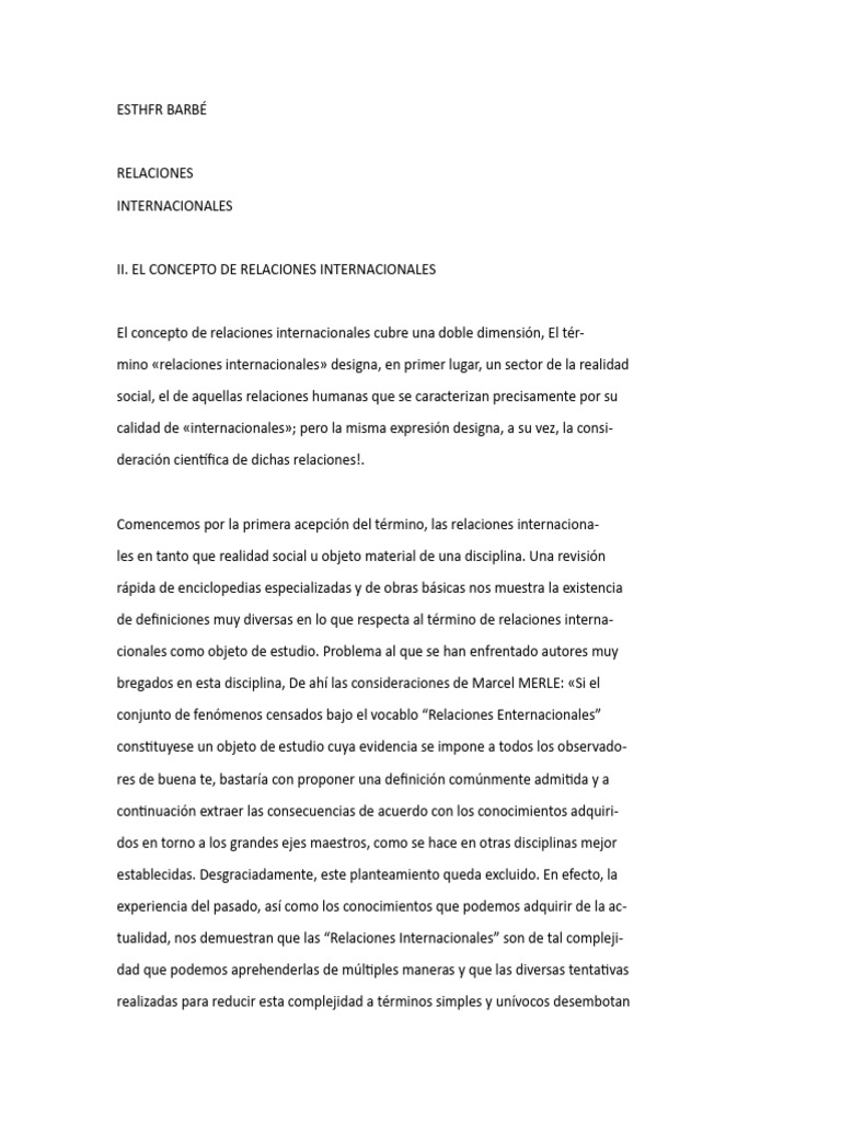 II. EL CONCEPTO DE RELACIONES INTERNACIONALES