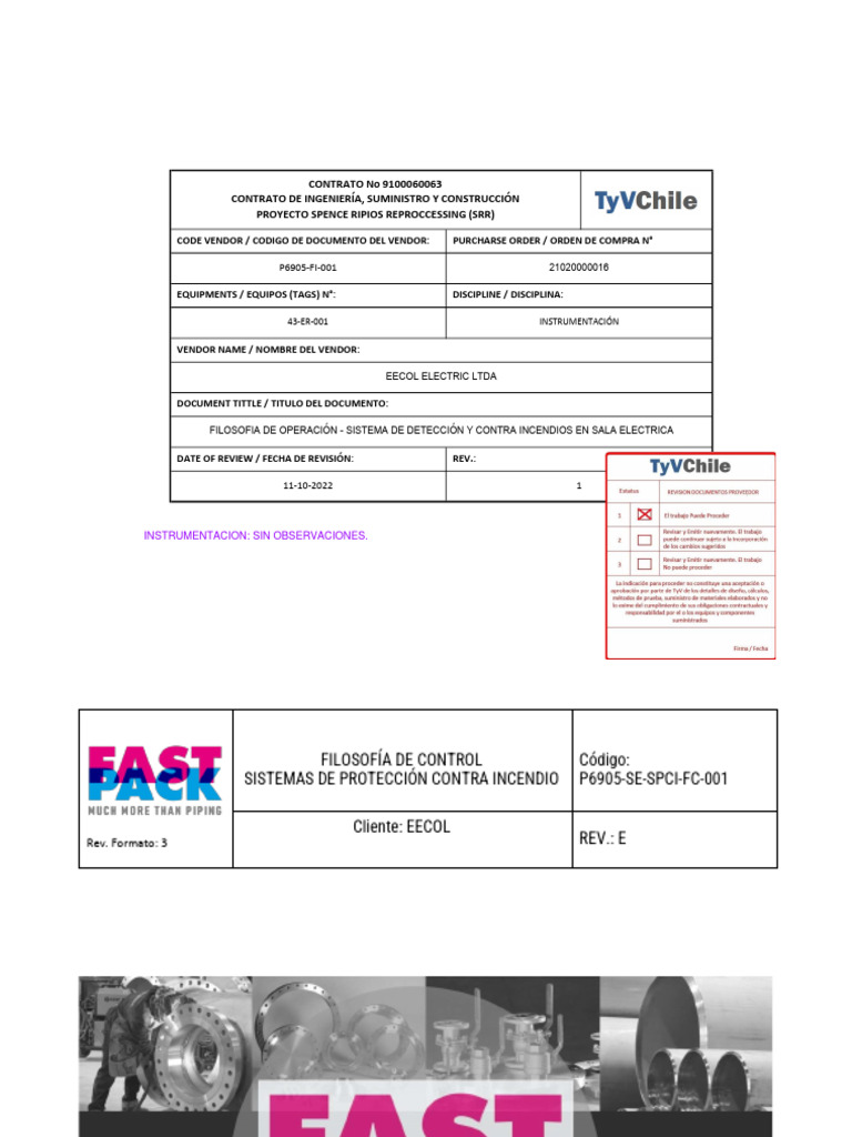 El proyecto de Protección Contra Incendios para sala eléctrica TAG: 43-ER-001 está compuesto por la serie de