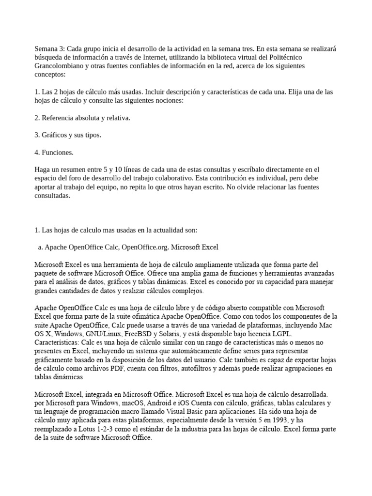 aportar al trabajo del equipo, no repita lo que otros hayan escrito. No olvide relacionar las fuentes