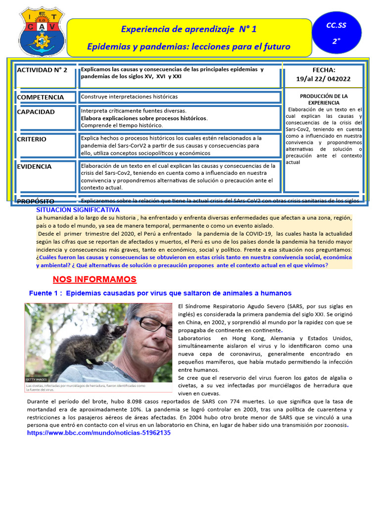 ACTIVIDAD N° 2 Explicamos las causas y consecuencias de las principales epidemias y FECHA: