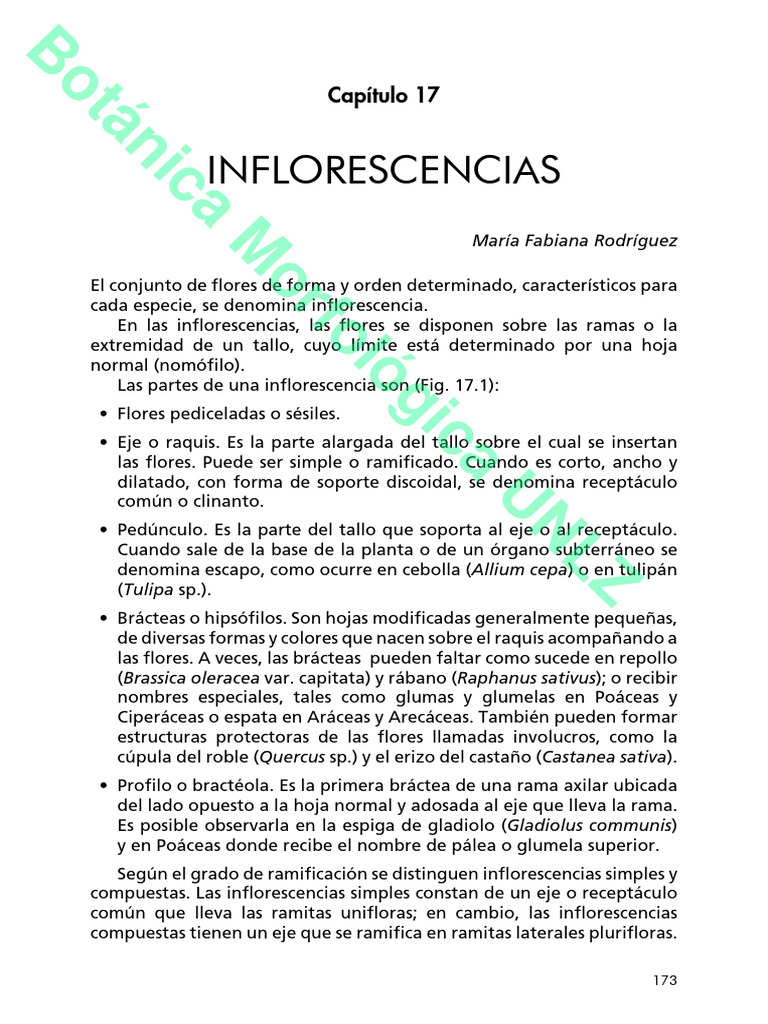 Las partes de una inflorescencia son (Fig. 17.1):