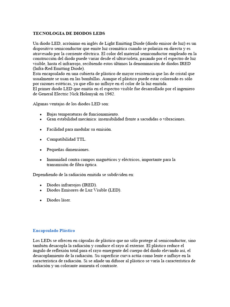Un diodo LED, acrónimo en inglés de Light Emitting Diode (diodo emisor de luz) es un