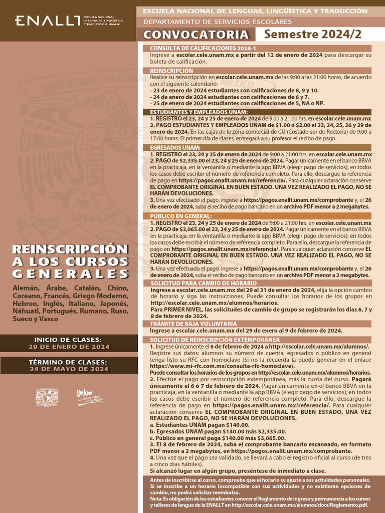 2. Efectúe el pago por reinscripción extemporánea, más la cuota del curso. Pagará