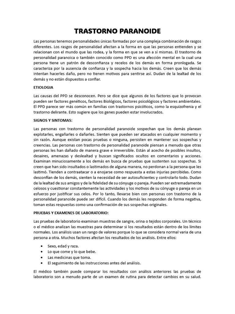 personalidad paranoica o también conocido como PPD es una afección mental en la cual una