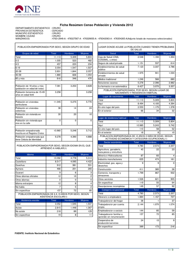 Total 11.113 5.309 5.804 Caja de Salud (CNS, 2.548 1.194 1.354
