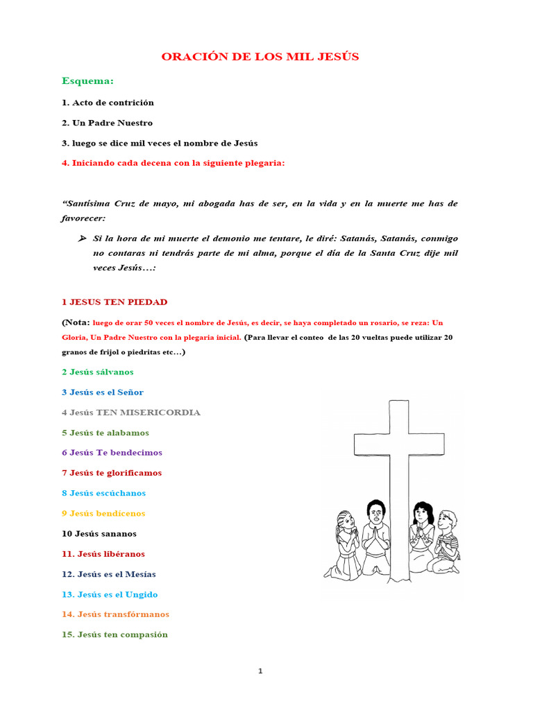 (Nota: luego de orar 50 veces el nombre de Jesús, es decir, se haya completado un rosario, se reza: Un