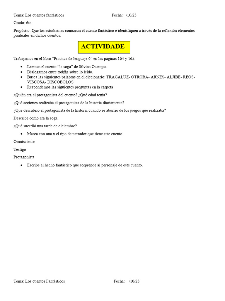 Tema: Los cuentos Fantásticos Fecha: /10/23