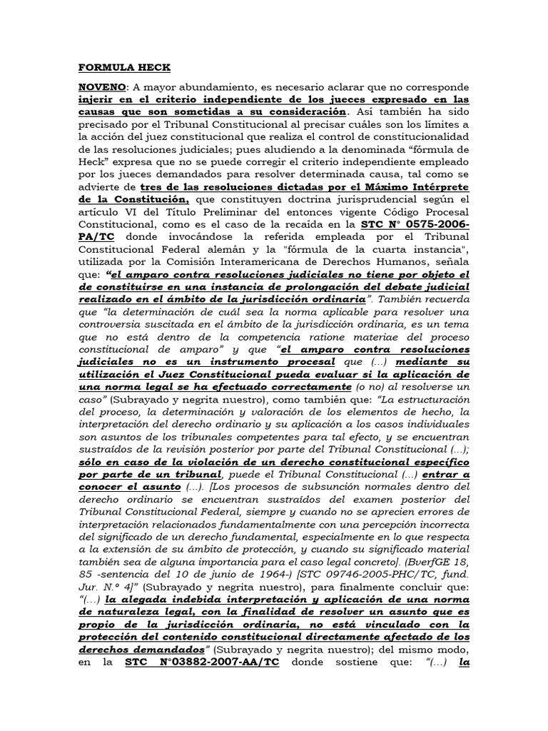 Heck” expresa que no se puede corregir el criterio independiente empleado