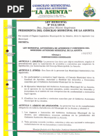 Ley Municipal de Aprobación del Reglamento General por el Concejo Municipal.