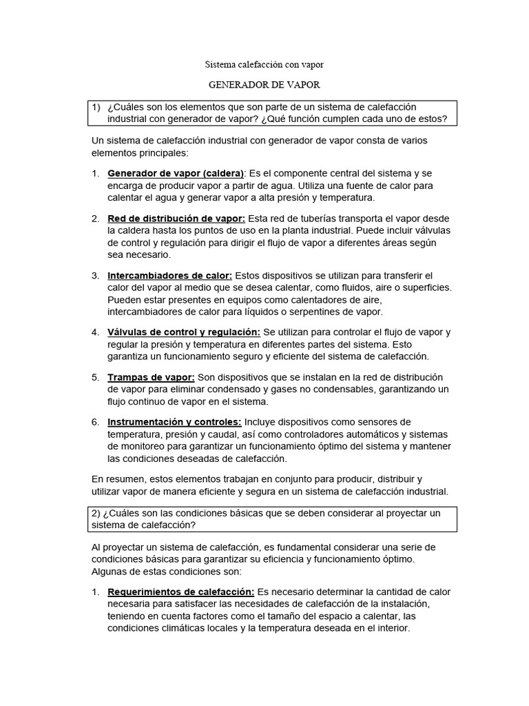 utilizar vapor de manera eficiente y segura en un sistema de calefacción industrial.