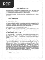 Las planificaciones tienen distintas clasificaciones según tiempo invertido o modelo pedagógico.